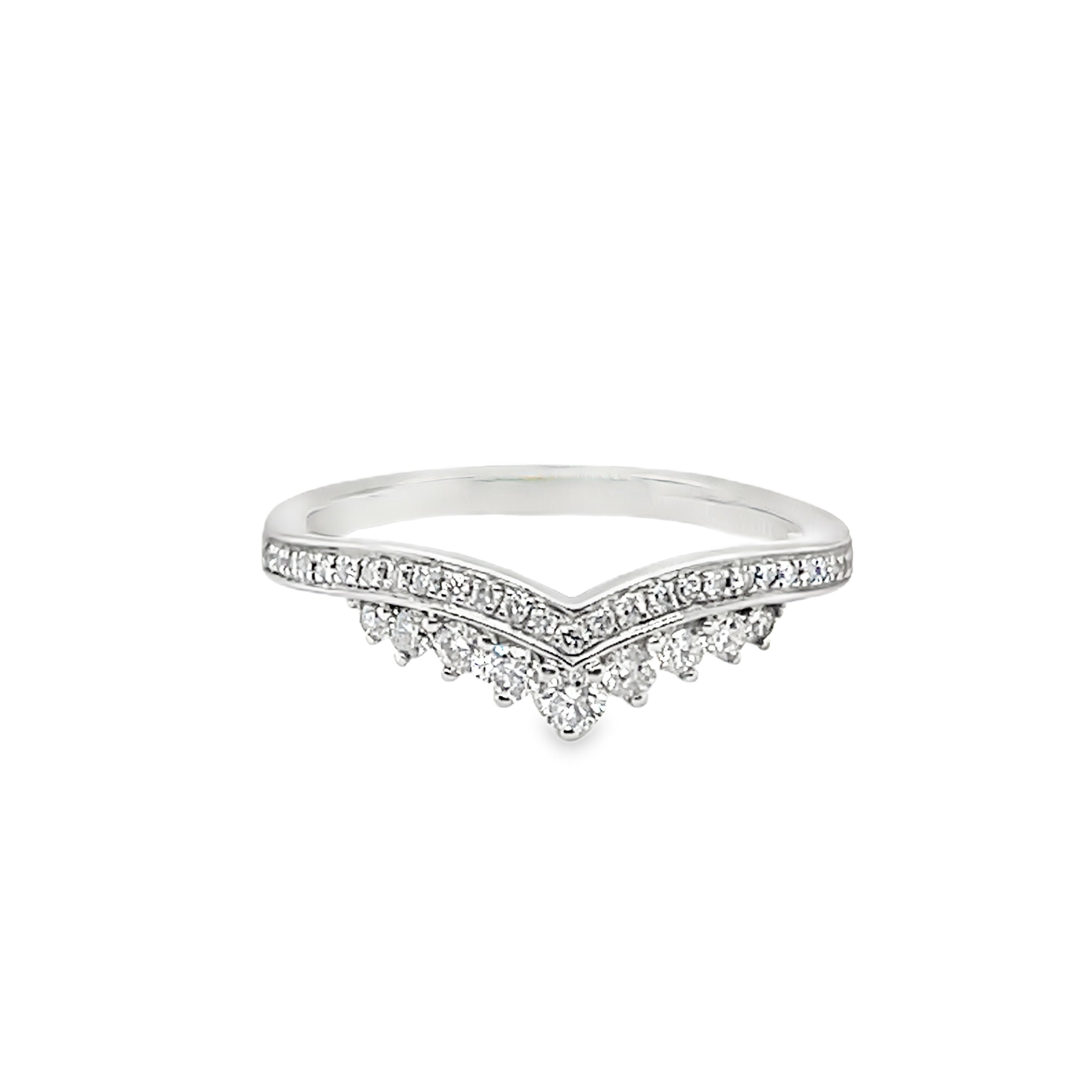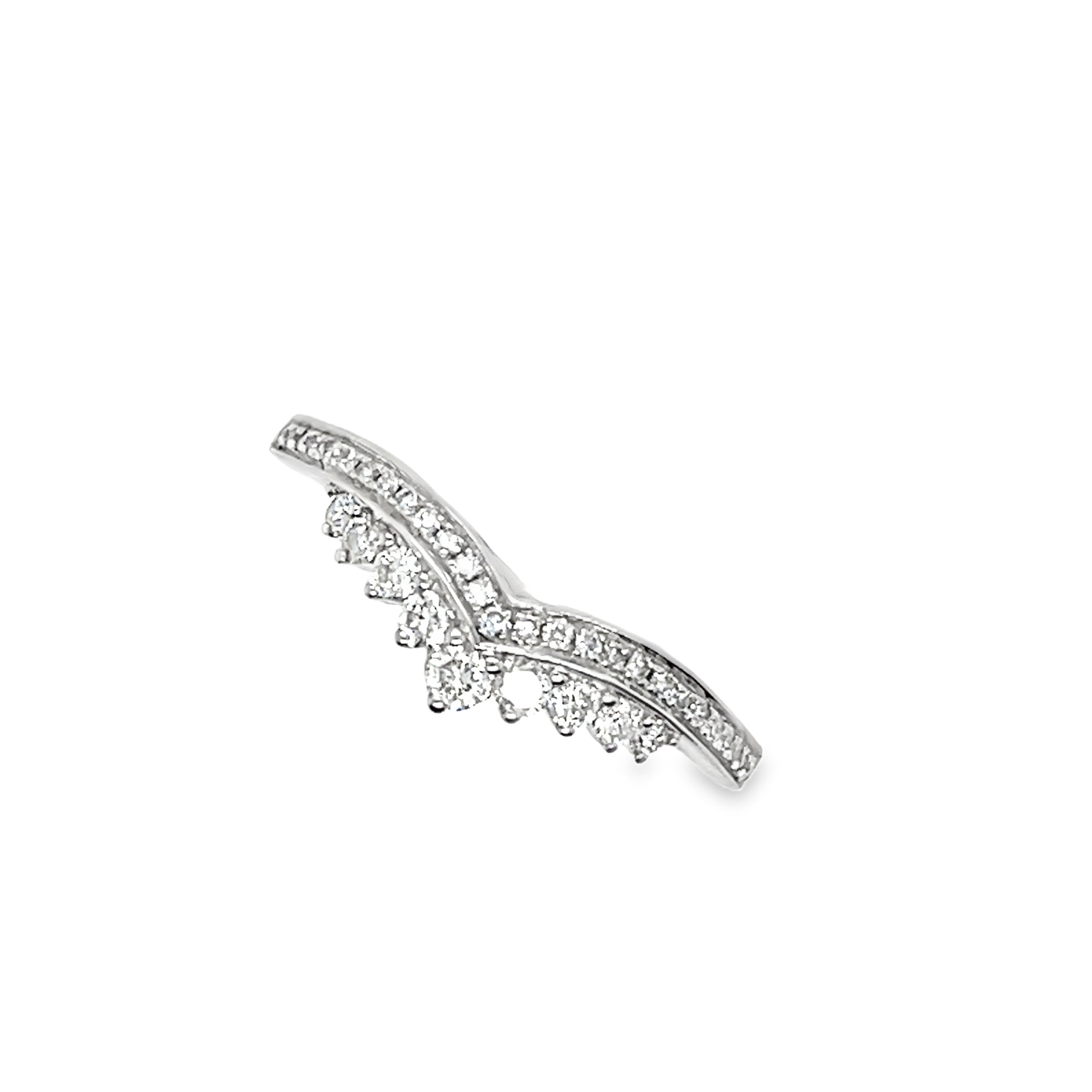 Elevate your style with this exquisite chevron tiara ring, crafted from gleaming Platinum. The ring features a graduated line of round brilliant cut natural diamonds, creating a delicate and sophisticated sparkle. Perfect for stacking or worn alone, this ring adds a touch of timeless elegance to any ensemble. The ring has a total diamond weight of 0.32ct