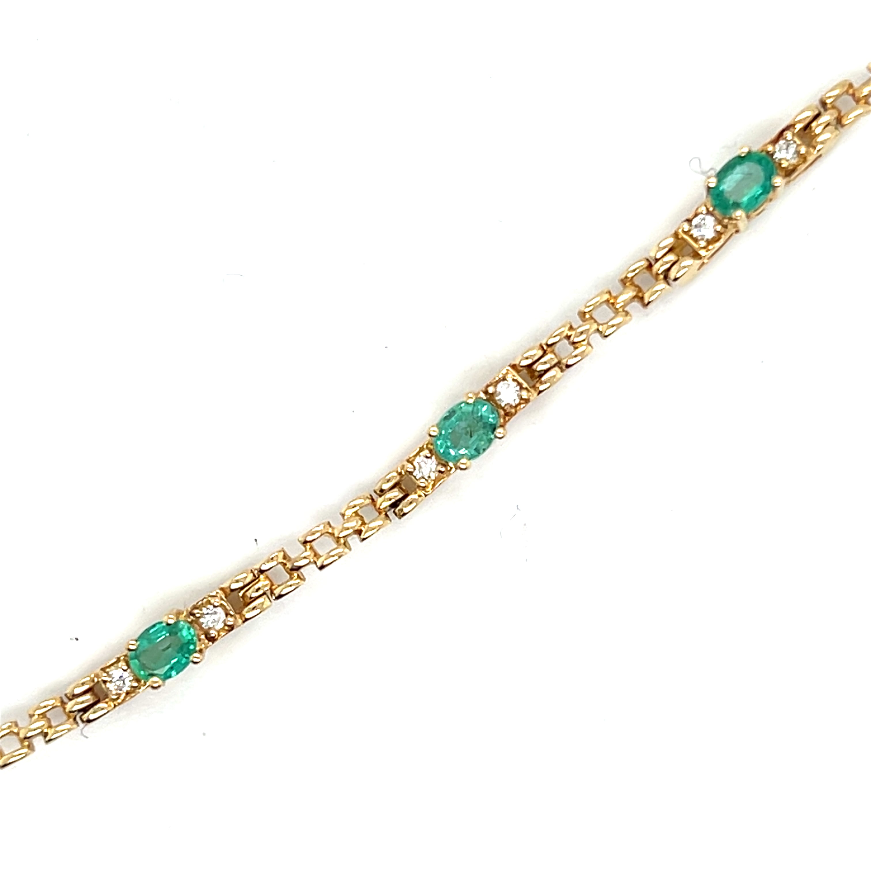 Elevate your style with this stunning 14ct yellow gold chain bracelet, showcasing captivating oval cabochon emeralds. The vibrant green hue of the emeralds is beautifully complemented by the rich yellow gold, creating a harmonious blend of classic elegance and modern design. A timeless piece that adds a touch of sophistication to any ensemble.